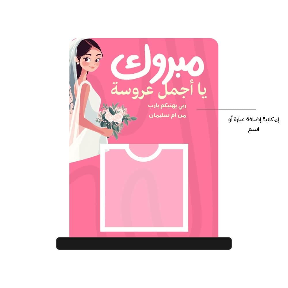 احتفل بأجمل اللحظات وقدّم أطيب التهاني بطريقة مميزة مع ستاند الأكريليك بتصميم "مبروك يا أجمل عروسة"!